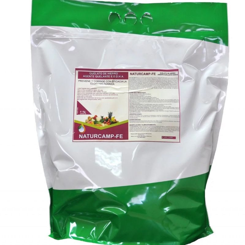 Corrector de las carencias de hierro y activador de creacion de clorofila. Está especialmente formulado para tratar todos los síntomas de esta carencia o la clorosis férrica. Se puede aplicar vía foliar o vía radicular en todos los cultivos.