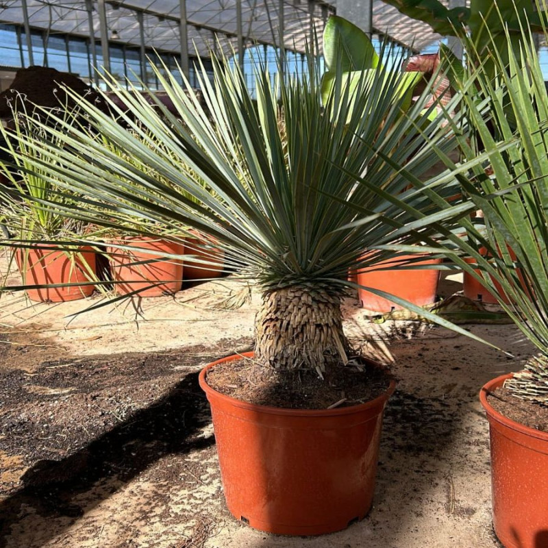 Nuestra colección presenta la Yucca Rostrata en toda su gloria, desde sus hojas en espiral hasta su característico tono azul verdoso. Cada planta es seleccionada con cuidado, asegurando la frescura y vitalidad que solo nuestras palmeras Yucca Rostrata pueden ofrecer.